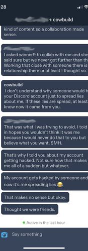 I mean......you know what you're doing is wrong. That's why you have this whole secret discord. That's why everyone mentioned in the chat is gonna be "hush hush" about it. You can them about it you want want, they're gonna deny everything I can tell you that right now!