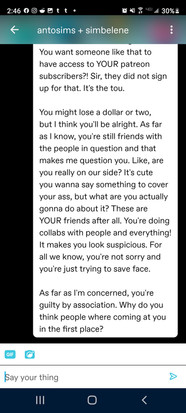 And then we have Antosims. I wanted to be on his side, but he wanted to get big-headed on me! Trying to shift blame. A tactic most manipulators do when they're caught with their pants down.