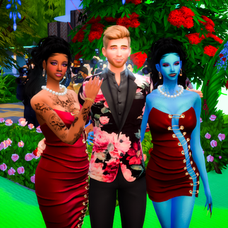 I wanted them to go to an event that wasn't super formal, but you needed to wear more than just jeans and a t-shirt. I have some dress sets in my inventory that hasnt been used yet, so I dressed Amira and Loki in a set. Both dresses are from Beto @ TSR. I think Tom's blazer is also from TSR somewhere.